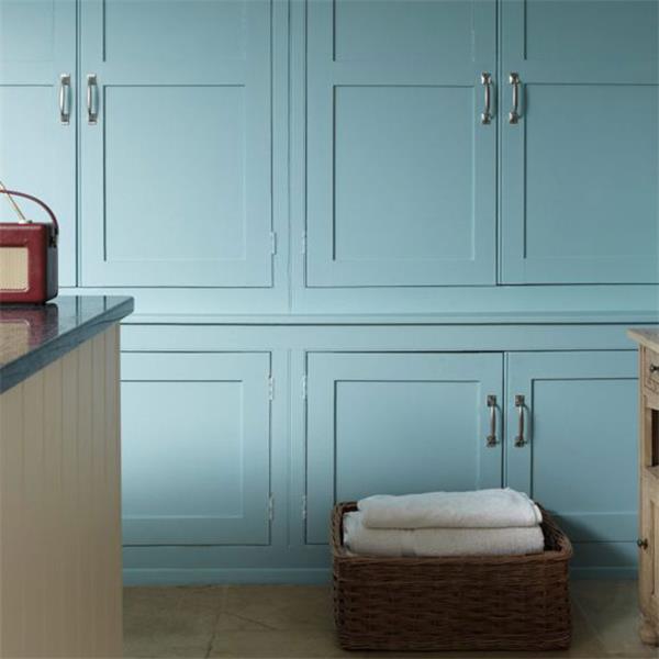 First used as a wallpaper ground colour in our damask collection, Blue Ground creates an upbeat and happy atmosphere which is often used in playrooms as an accent colour alongside Wevet or James White. This clean mid blue tone is both optimistic and friendly, but never cold.