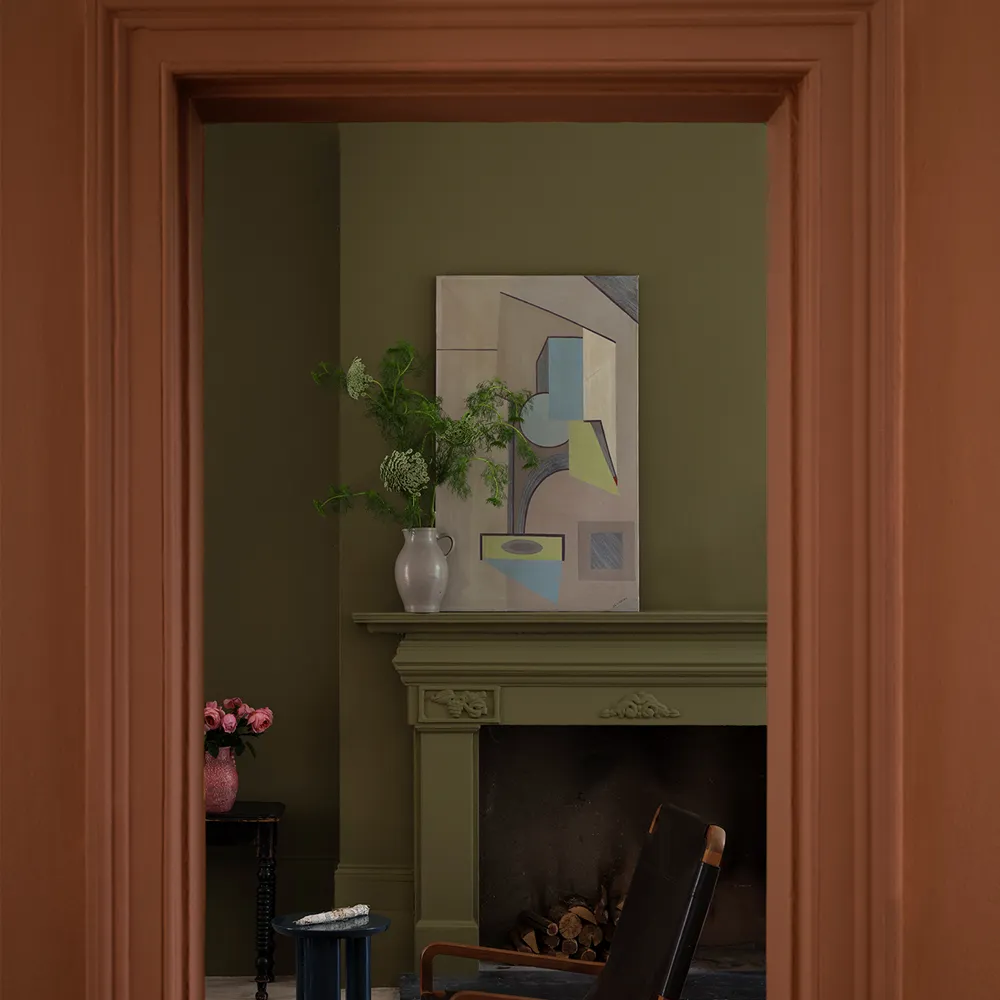 Dibber No.312 by Farrow & Ball. A down-to-earth green. Named after the tool beloved by gardeners to create holes for planting seeds or bulbs, this muddied green has a close association with the natural world.