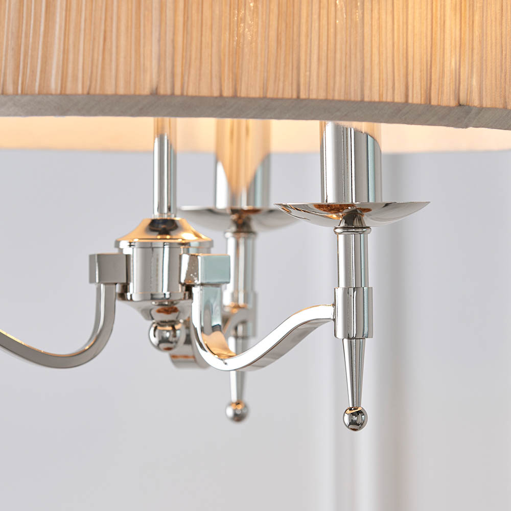 - Elegant nickel 3lt pendant & beige shade