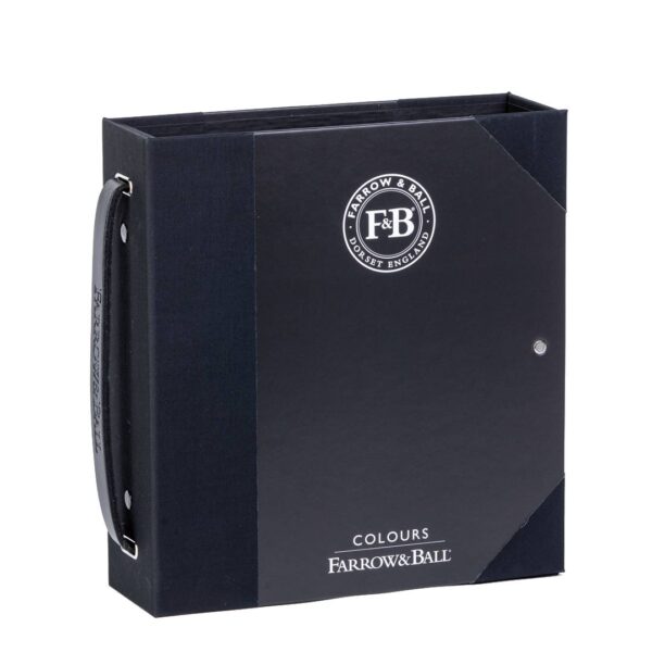 The full Farrow & Ball signature palette of 132 shades, displayed in a lever arch file. One shade is shown per page, with the colour name, origin, and description on the back. This is a portable alternative to our set of 132 brush-out boards, and a helpful tool for Consultants drawing from the Farrow & Ball palette at in-home appointments.