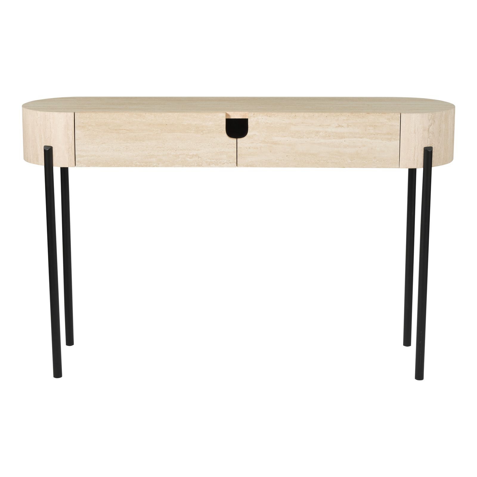 ioana console table travertine effect and matt black
