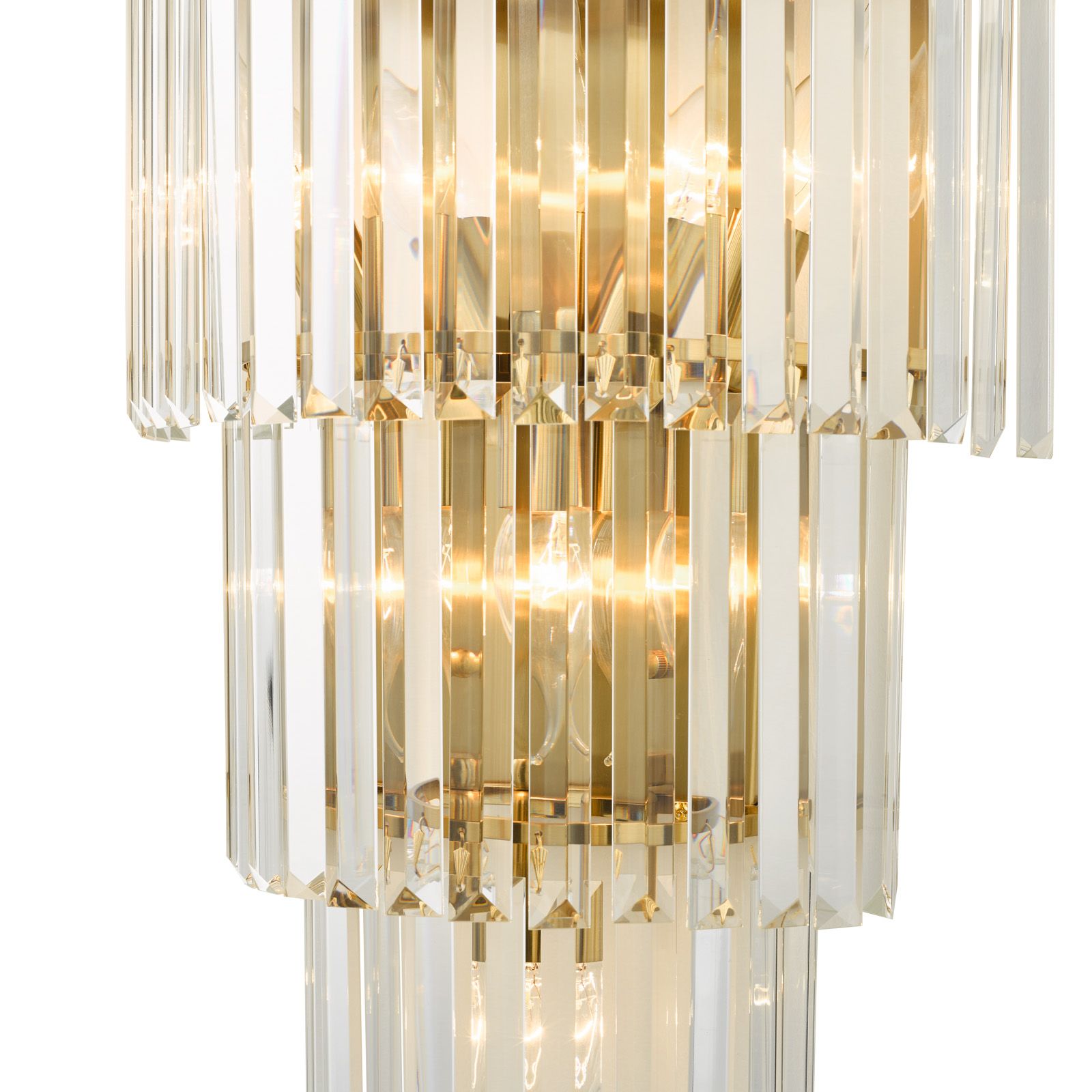 Elevate your space with the elegant glow of this luxurious 3 tier crystal and antique gold wall light. This luxurious fixture boasts six lights arranged in three tiers of sparkling crystal, creating a cascading effect that’s sure to catch the eye. The antique gold finish adds a touch of warmth and opulence, perfectly complementing the dazzling crystals. Whether illuminating a grand entryway or serving as a statement piece in your living room, this wall light brings a celestial charm to any setting.