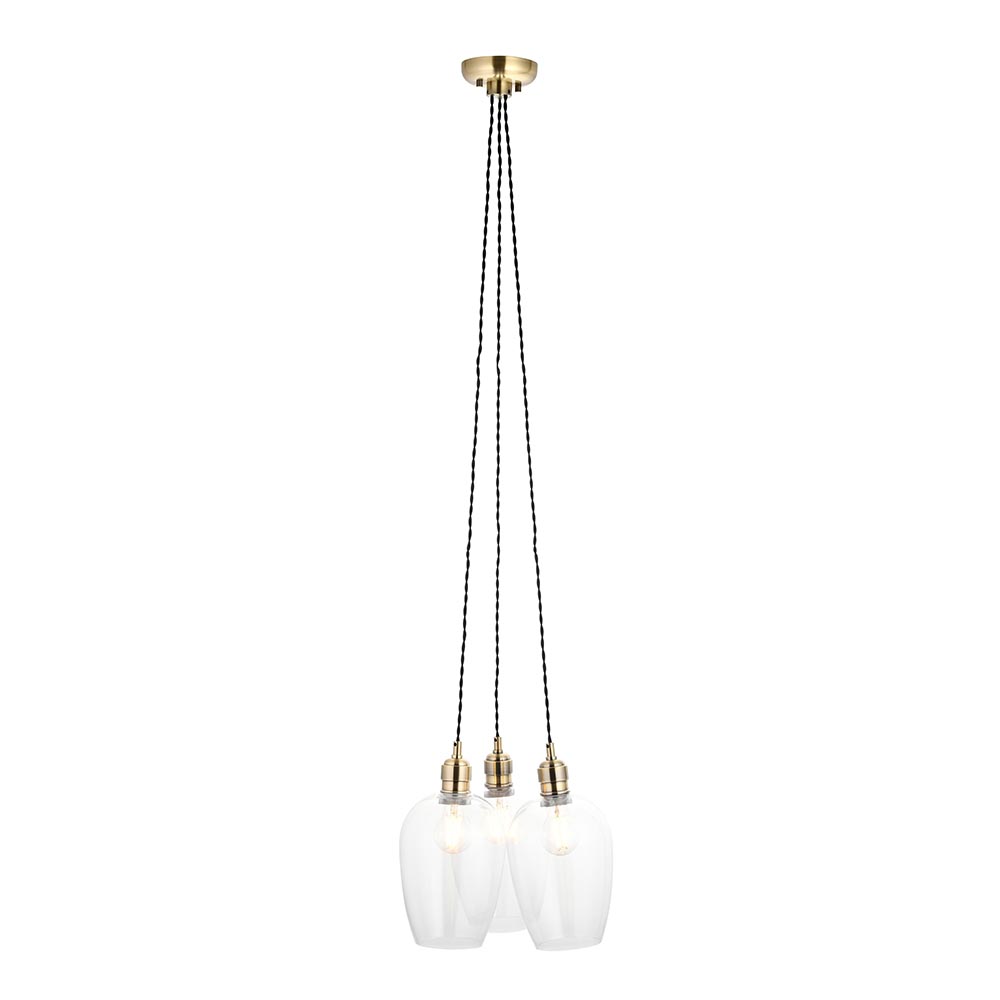 luxurious antique brass and clear glass 3 light cluster pendant