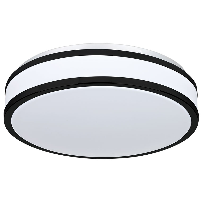 A modern led black trim bathroom flush ceiling light.
