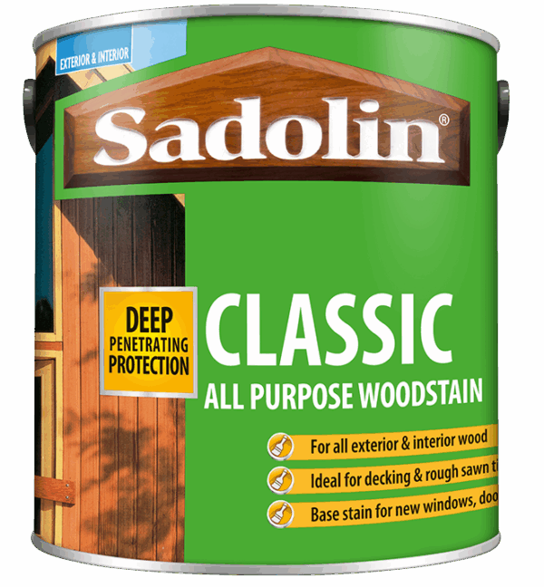 Sadolin Classic All Purpose Woodstain absorbs deeply into the timber to provide exceptional protection against the weather. It is particularly effective used on it’s own on large areas of timber such as decking, fencing, cladding, and garden furniture. It is also the perfect basecoat for new doors and windows, which can then be overcoated with Sadolin Extra, or Sadolin Clearcoat.