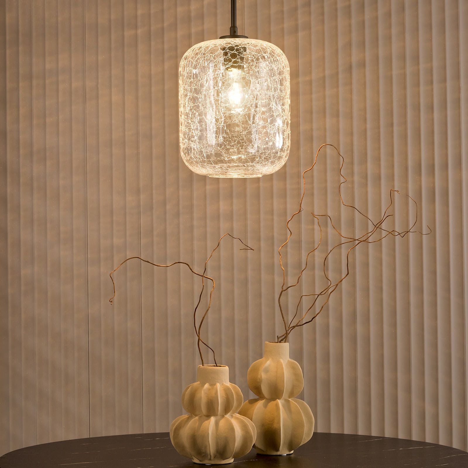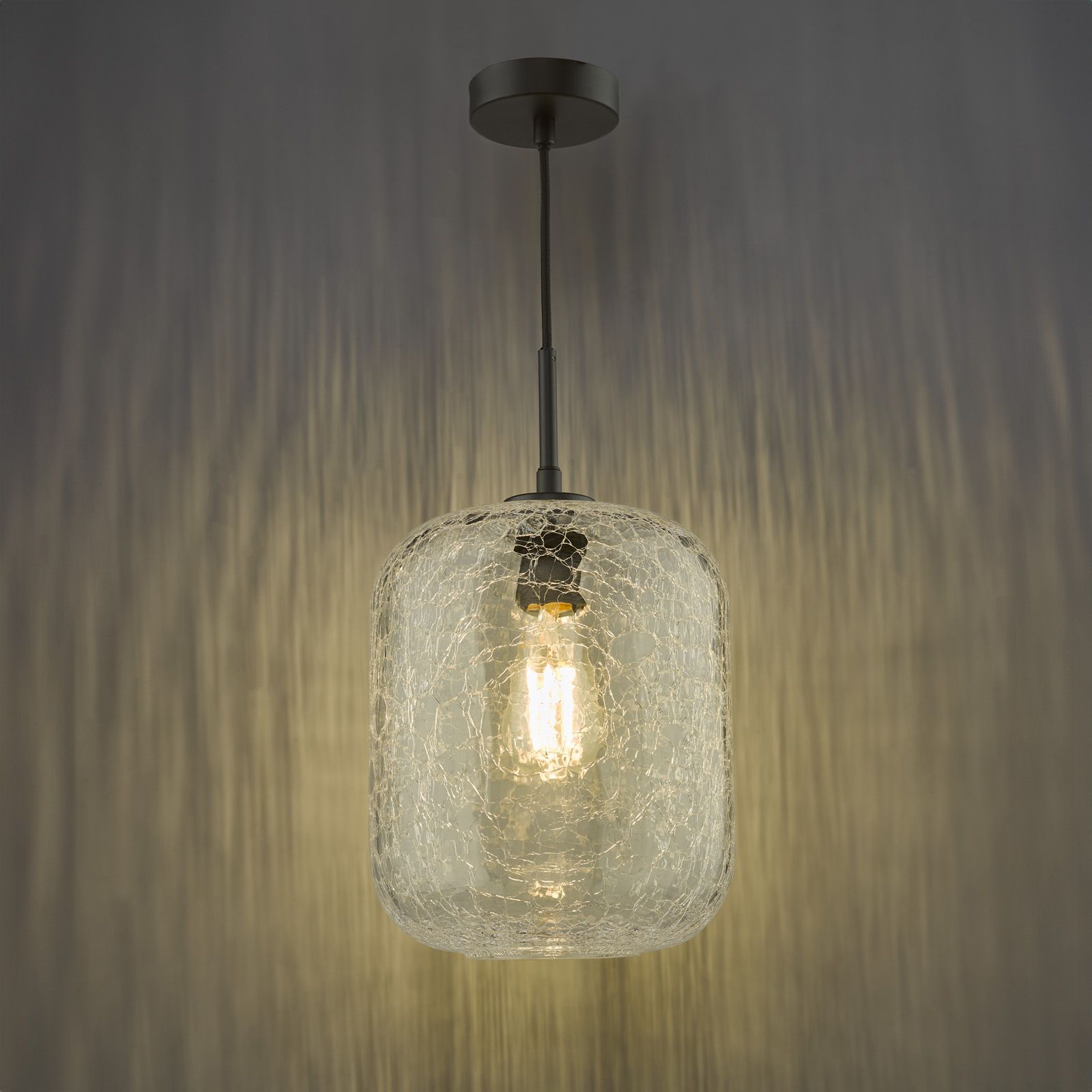 timeless pendant light in matt black with clear crackle glass